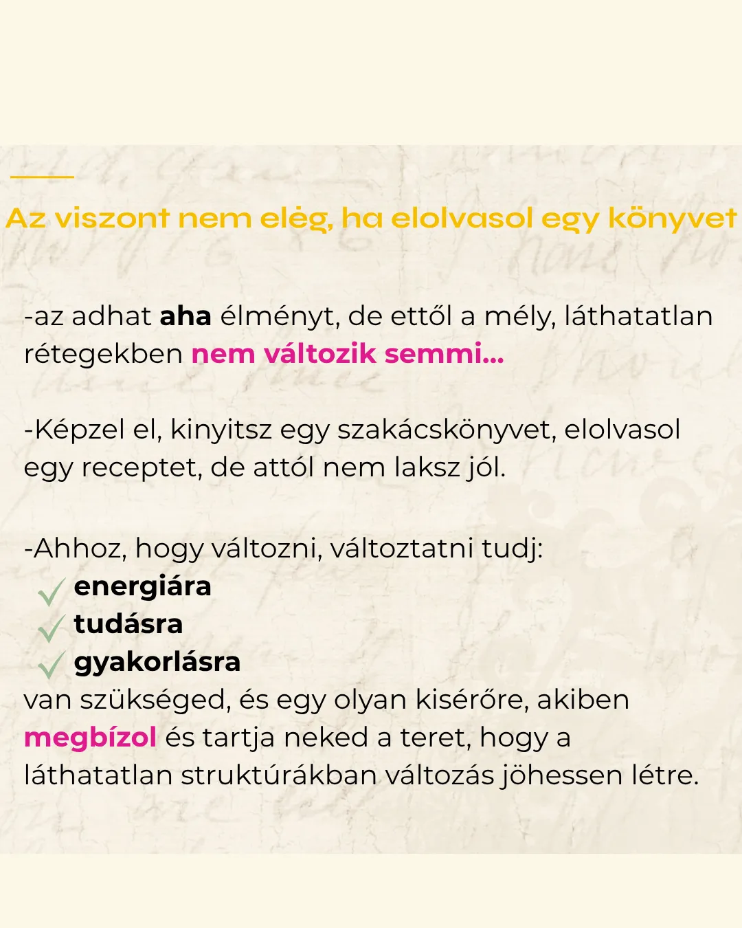• A saját utam is egy ilyen ponttal kezdődött. Akkor még nem tudtam, mi ez az érzés – csak azt, hogy nincs meg a belső békém. Azóta sokaknak segítettem abban, hogy felismerjék és elengedjék azokat a belső gátakat, hozott mintákat, amelyek évtizedeken át befolyásolták az életüket.